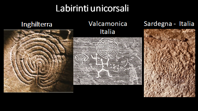 Il labirinto classico, come segno grafico, ha diverse varianti, tutte univiarie. La più comune, fin dalla preistoria, è il labirinto composto da sette volute, o cerchi. Il percorso dall’esterno raggiunge subito la terza voluta, quindi viene deviato sulla prima e più esterna, per poi avvicinarsi progressivamente al centro.